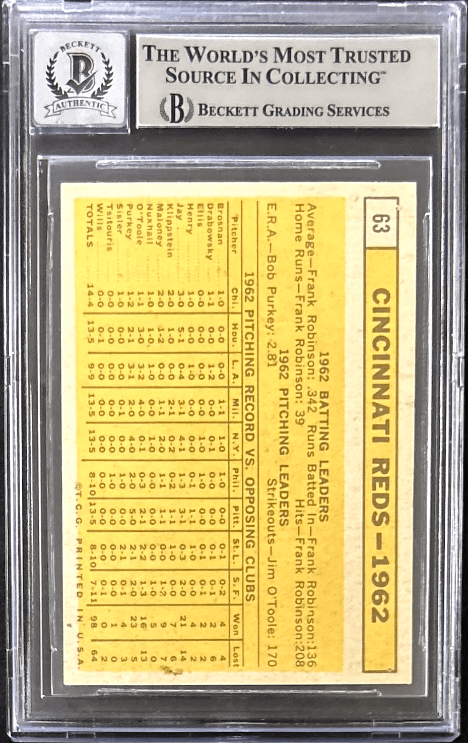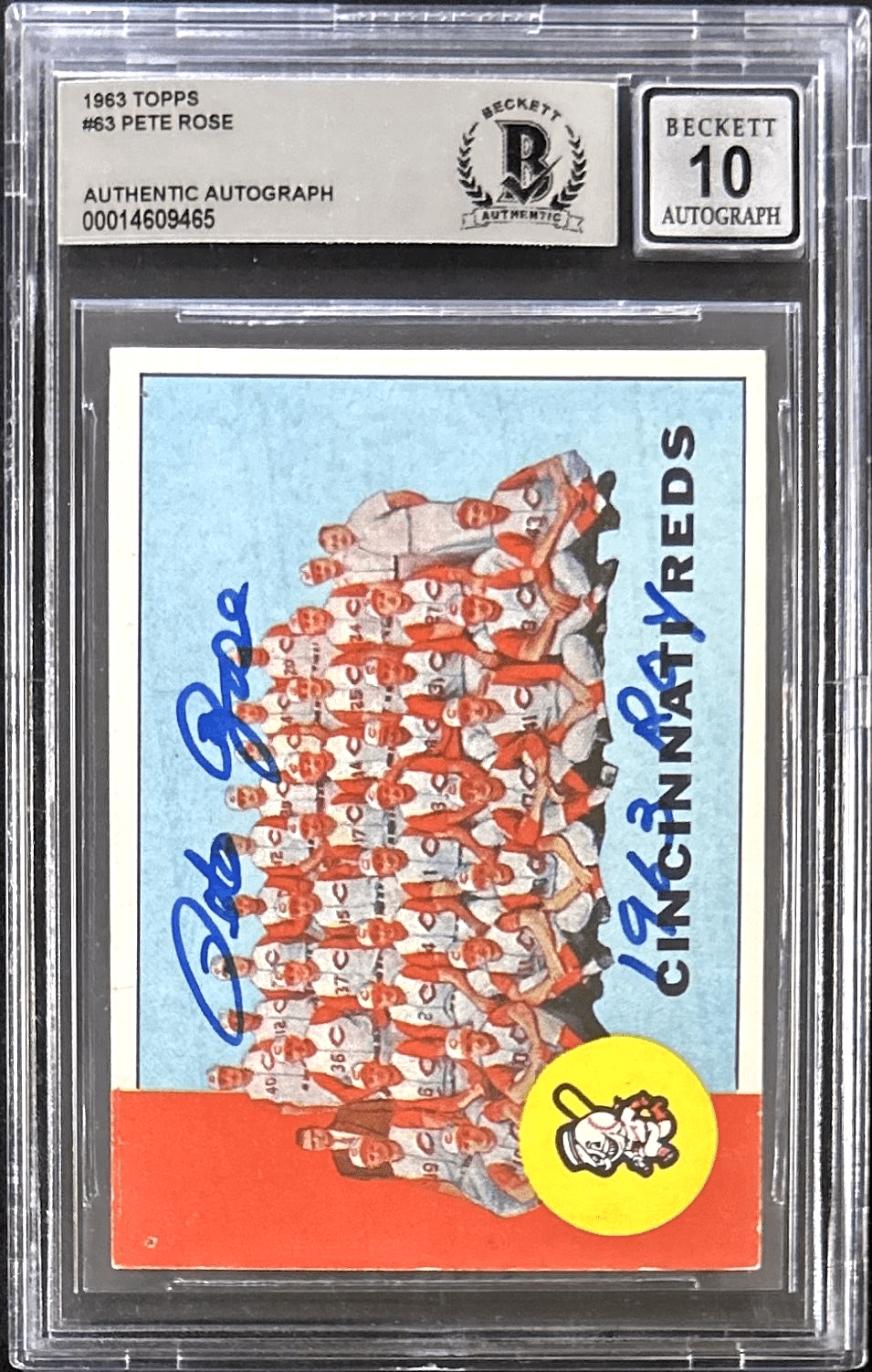 Pete Rose Signed TC 1963 Topps Card #63 Beckett 14609836 Reds 63 ROY Auto 10