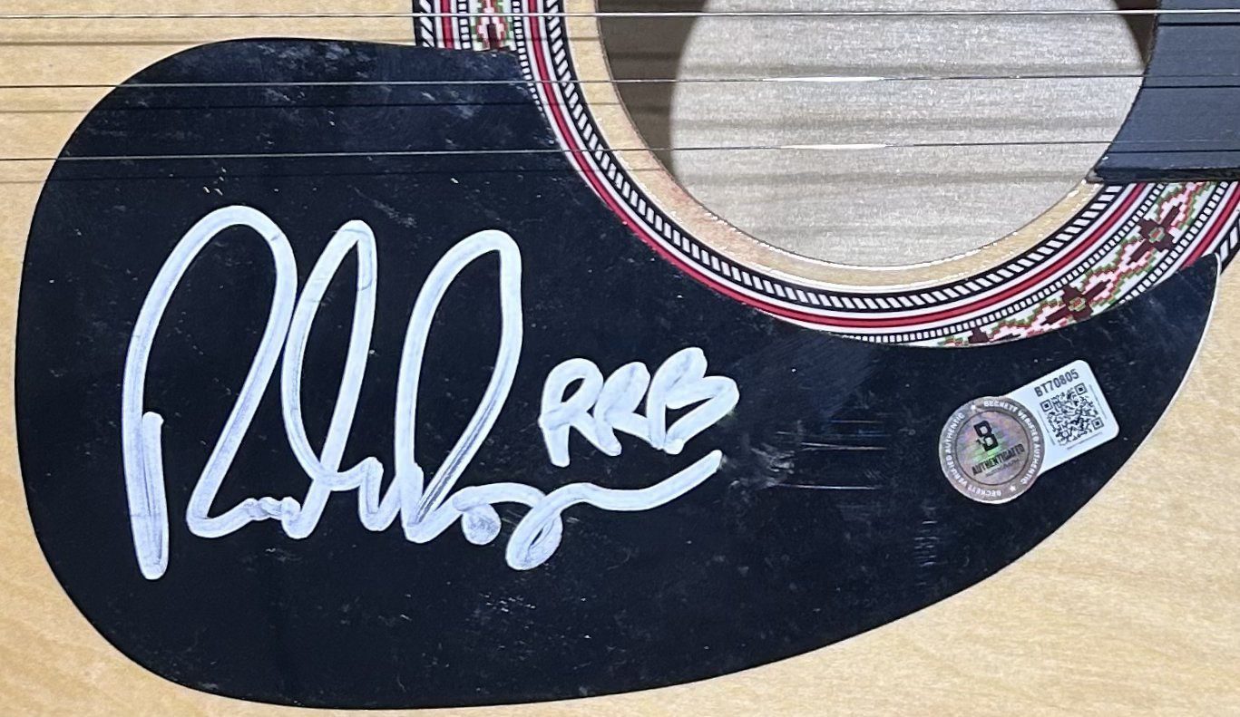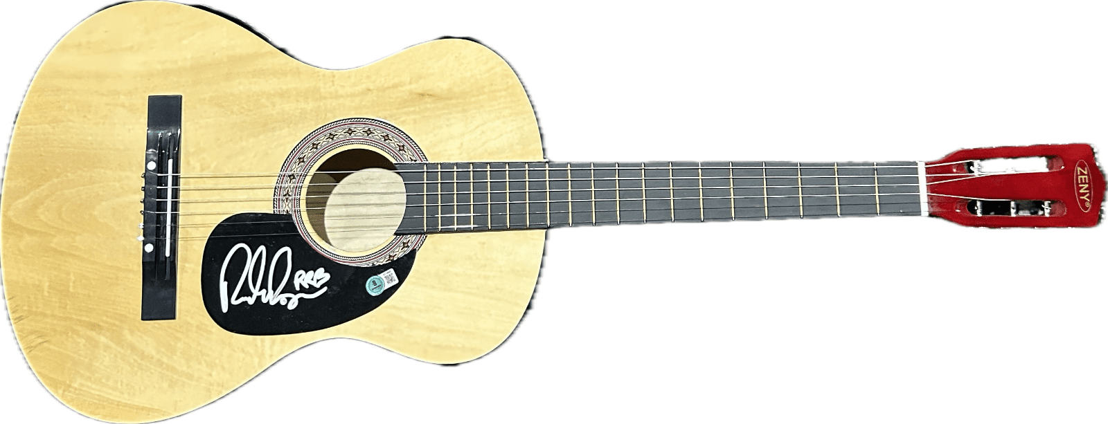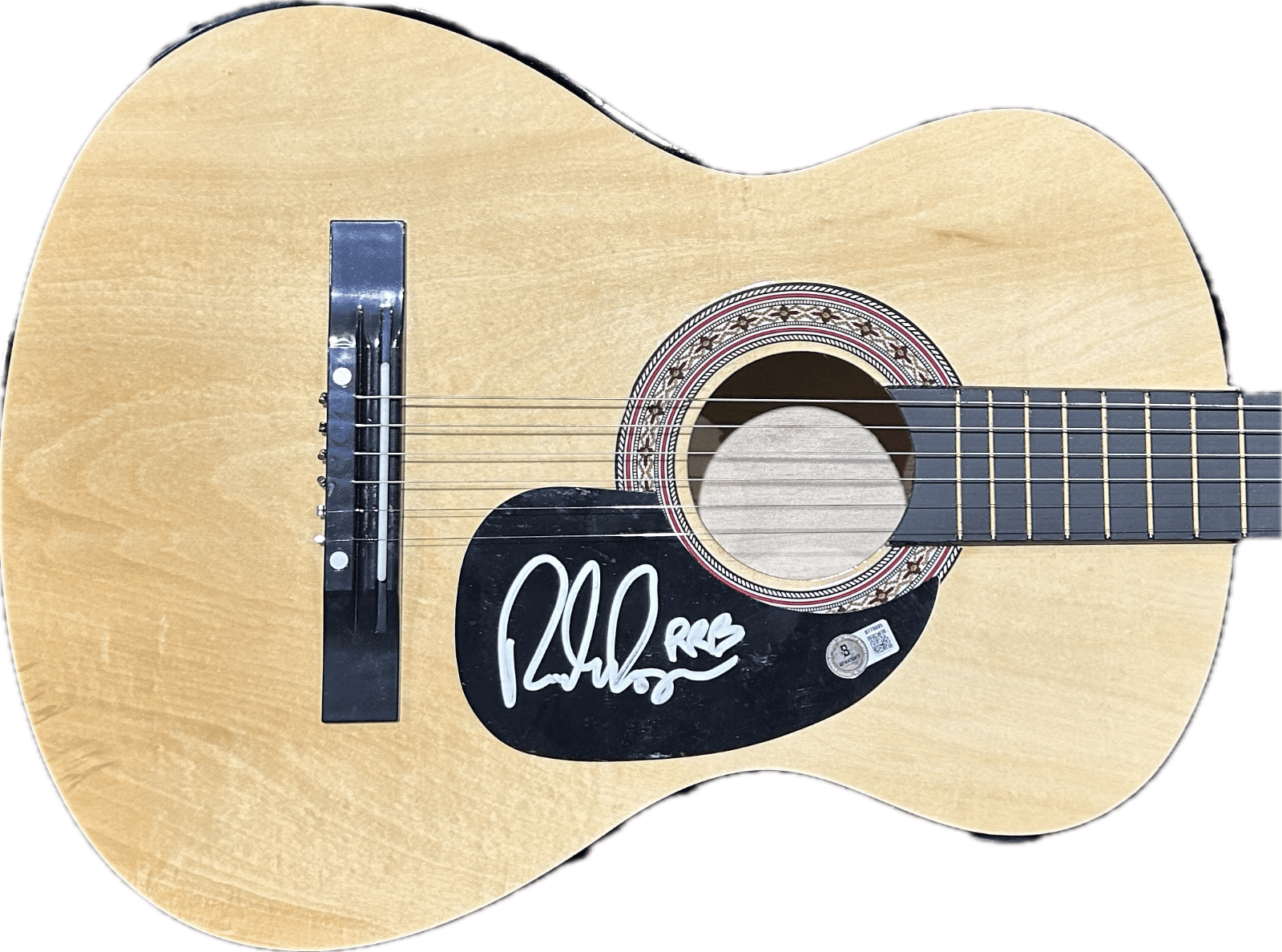 This isĀ anĀ acoustic guitar measures approximately 38″ in length and has been hand-signed by the person mentioned above.Ā This is a 38-inchĀ natural acousticĀ guitar;Ā this guitar is a display guitar. It is a lower-tier version and is not the same quality as one that a musician would play.Ā This item has aĀ Beckett Authentication tamper proofĀ hologram attached to the item. You can view this items authenticationĀ on theĀ Beckett website.Ā All of our autographs are 100% Authentic.Ā