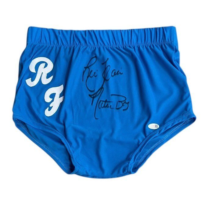 This is a hand autographed trunks by the person listed above. This item comes with the inscription: Nature Boy. These are custom trunks like the ones Ric wore to wrestle.  All trunks are brand new, never worn. This item has a JSA Authentication tamper proof sticker attached to the item. You can view this items authentication on the JSA website. All of our items are signed either at a public autograph appearance or a private signing. All of our autographs are 100% Authentic.