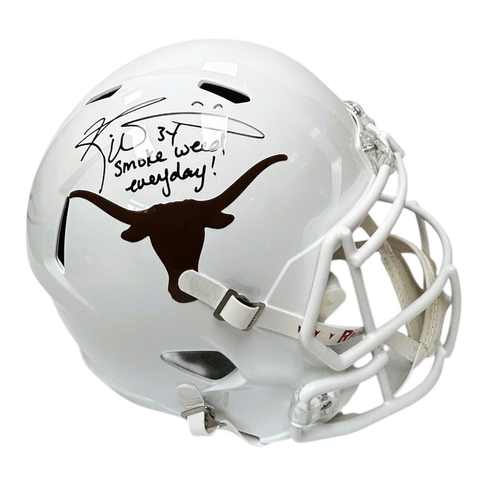 This is a hand autographed full size replica helmet signed by the person listed above. This helmet comes with the inscription “Smoke Weed Everyday”. This item has a Beckett Authentication tamper proof sticker attached to the item. You can view this items authentication on the Beckett website which shows when and where the item was signed. All of our items are signed either at a public autograph appearance or a private signing. All of our autographs are 100% Authentic.Â