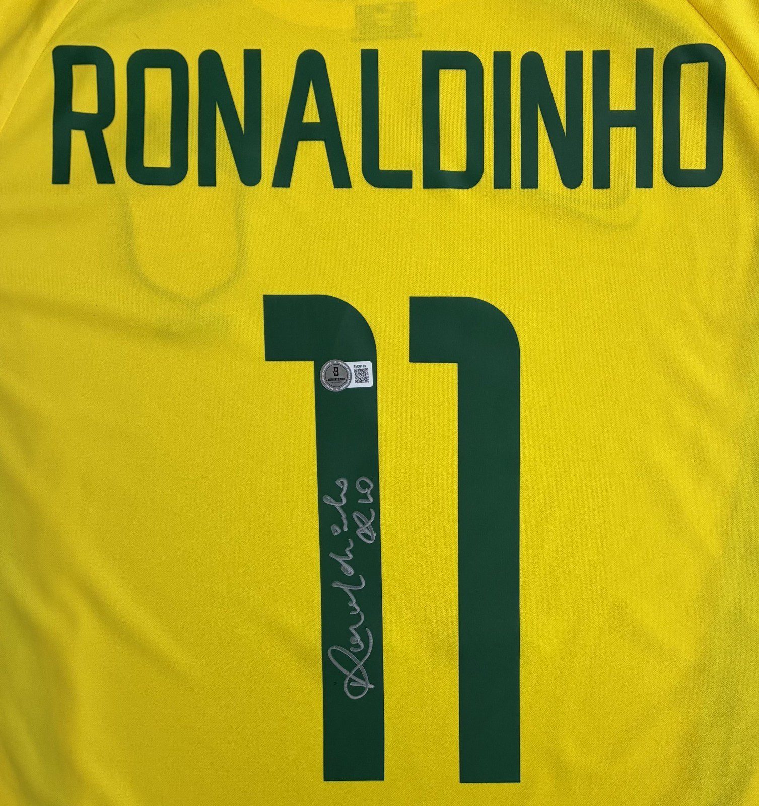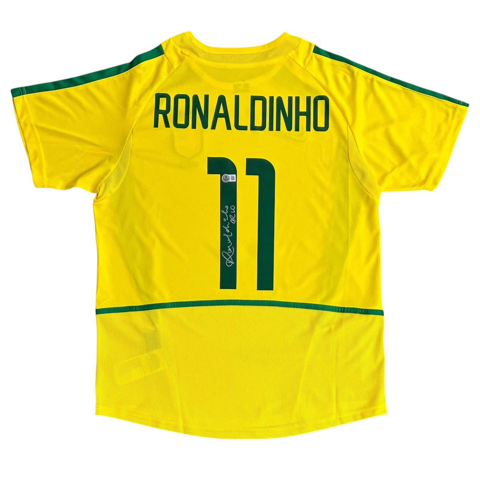 is a hand autographed jersey signed by the person listed above. This is a Brazil Jersey . This jersey is size Large and is brand new, never worn. This item has a Beckett tamper proof sticker attached to the item. You can view this item authentication on the Beckett website. All of our autographs