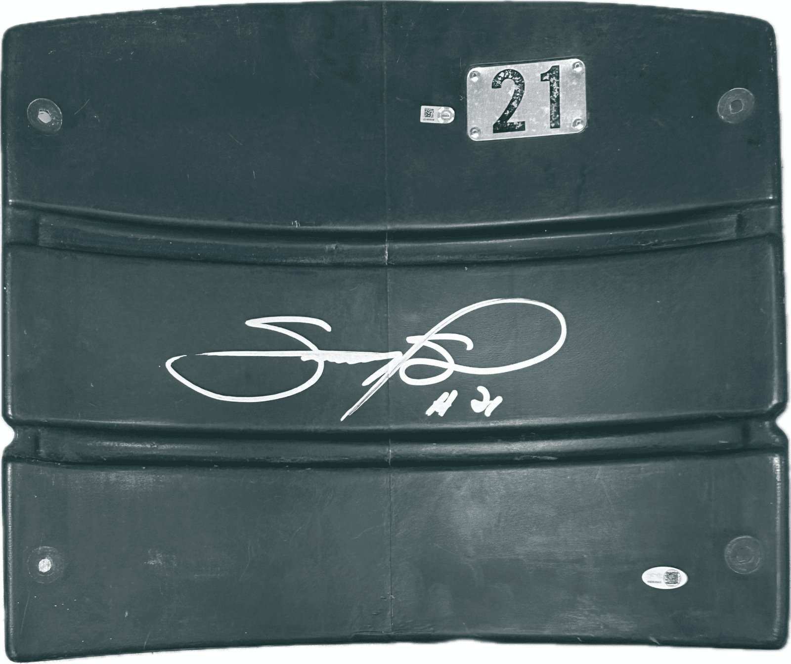 This is a hand autographed seat back by the person listed above. This item has a JSA Authentication tamper proof sticker attached to the item. You can view this items authentication on the JSA website which shows when and where the item was signed. All of our items are signed either at a public autograph appearance or a private signing. All of our autographs are 100% Authentic.