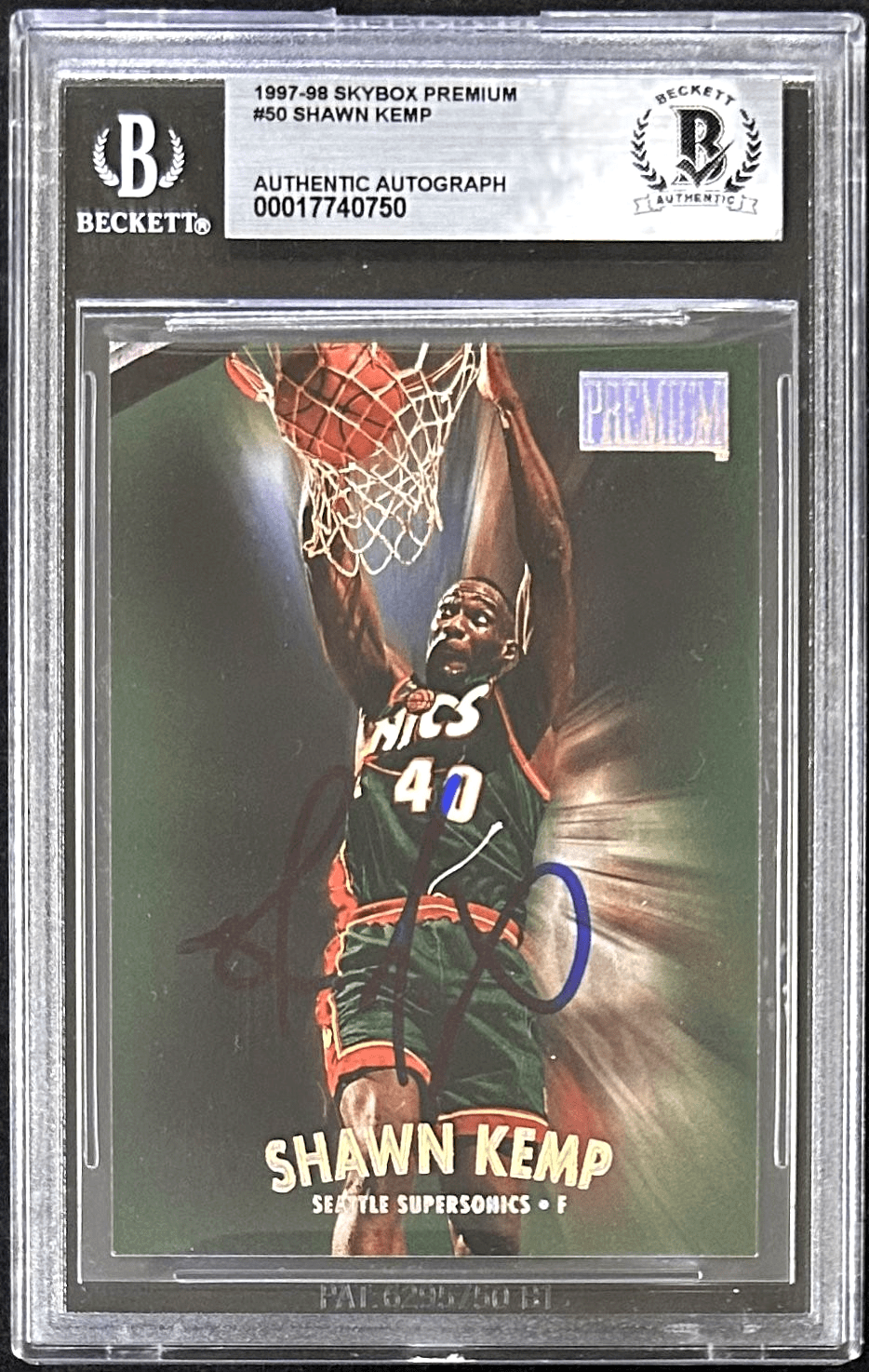 Shawn Kemp 1997-98 Skybox Premium Reebok Signed Card #50 Beckett 17740750
