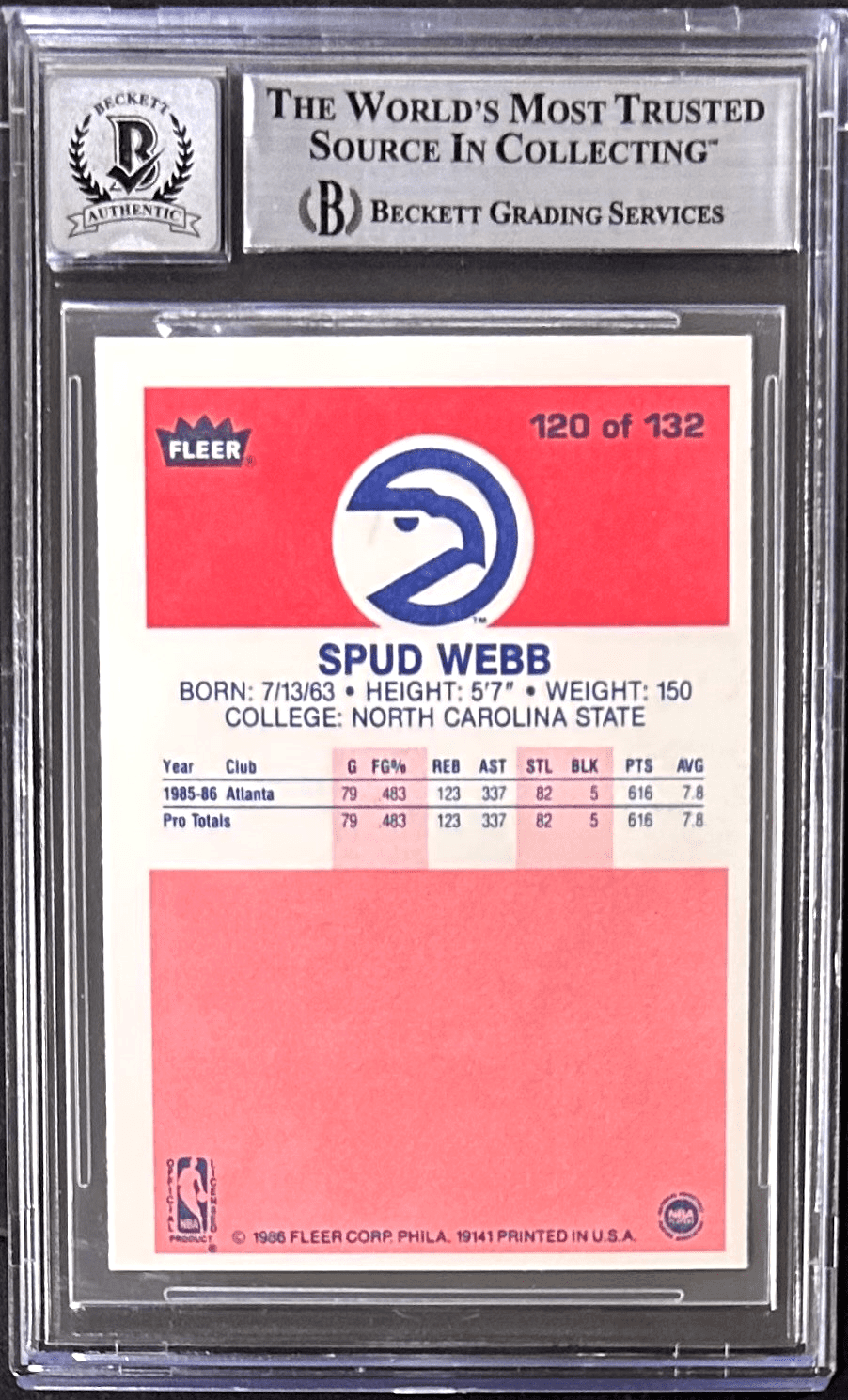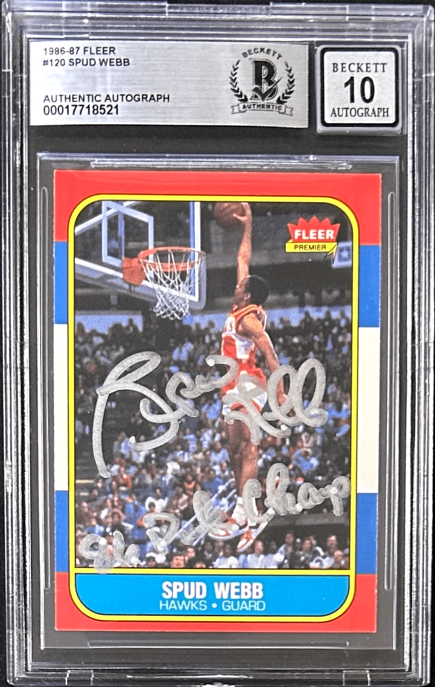 SPUD WEBB AUTOGRAPHED 1986-87 FLEER CARD #120 BECKETT 17718521 86 DUNK CHAMP