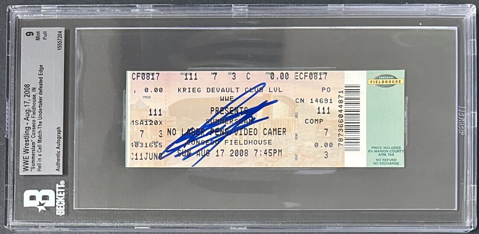 Undertaker Signed WWE SummerSlam Aug. 17, 2008 Ticket Beckett 9 Mint