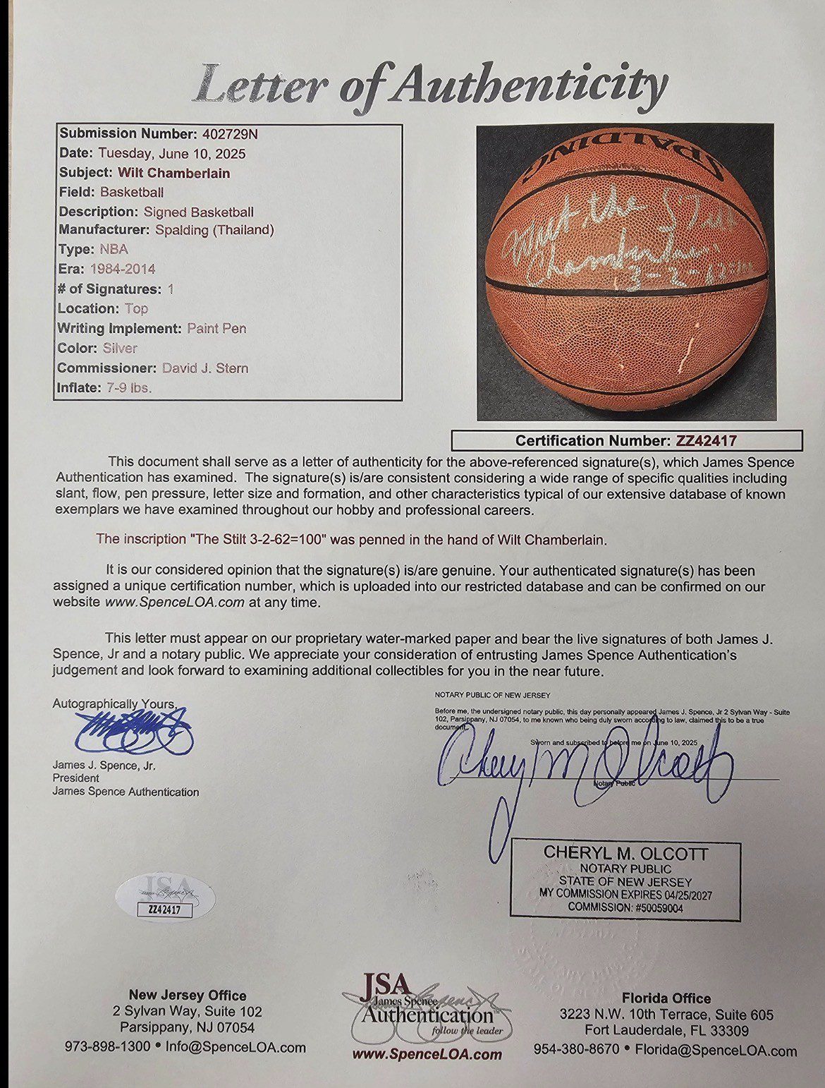 This is a hand autographed basketball signed by the persons listed above. This ball comes with the inscription:3-2-63=100. This item has a JSA Authentication which comes with a JSA #’ed tamper proof sticker attached to the item comes with the matching JSA certificate of authenticity. You can view this items authentication on the JSA website which shows when and where the item was signed. All of our items are signed either at a public autograph appearance or a private signing. All of our autographs are 100% Authentic.