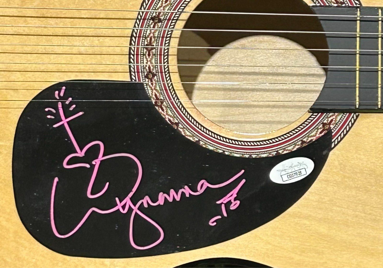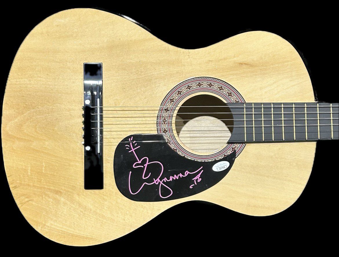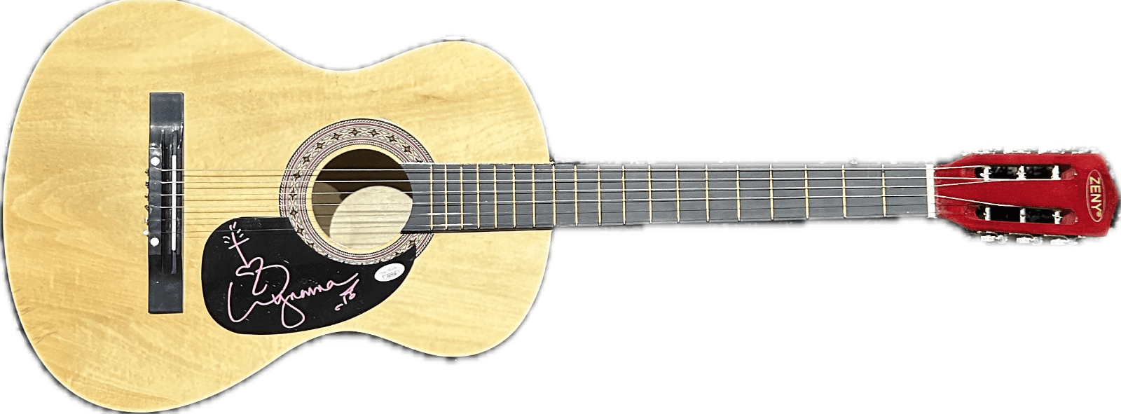 This is an acoustic guitar measures approximately 38″ in length and has been hand-signed by the person mentioned above. This is a 38-inch natural acoustic guitar; this guitar is a display guitar. It is a lower-tier version and is not the same quality as one that a musician would play. This item has a JSA Authentication tamper proof hologram attached to the item it also comes with a matching JSA authentication card. You can view this items authentication on the JSA website. All of our autographs are 100% Authentic.