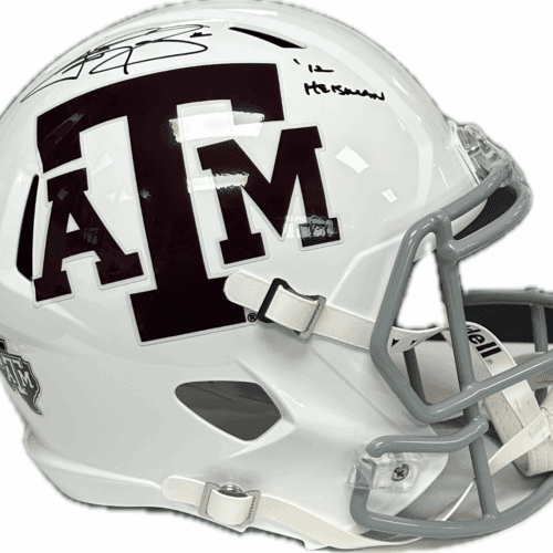 JOHNNY MANZIEL AUTOGRAPHED WHITE A&M SPEED FULL SIZE HELMET JSA ’12 HEISMAN