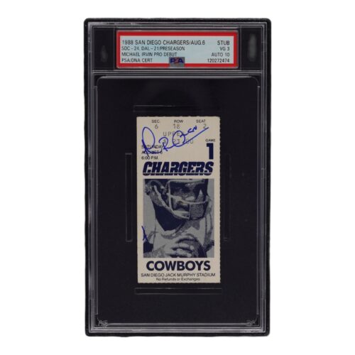 MICHAEL IRVIN SIGNED 8/6/1988 DALLAS COWBOYS PRESEASON PRO DEBUT TICKET STUB PSA