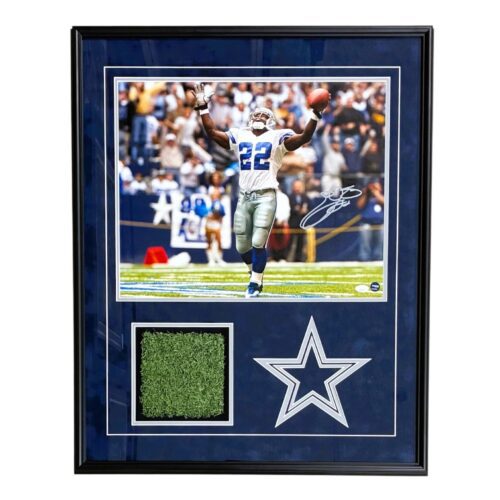 Emmitt Smith Autographed Framed 16×20 Photo with Cowboy Stadium Turf JSA …