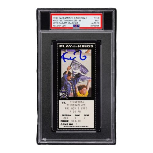 KEVIN GARNETT SIGNED NBA MININESOTA TIMBERWOLVES DEBUT TICKET 11/3/1995 PSA PR 1