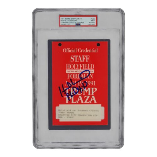 EVANDER HOLYFIELD SIGNED 1991 HOLYFIELD VS FOREMAN STAFF PASS PSA NM 7 POP 1
