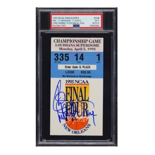 CHRIS WEBBER SIGNED 1993 NCAA FINALS TIMEOUT TECHNICAL FOUL TICKET STUB PSA 5