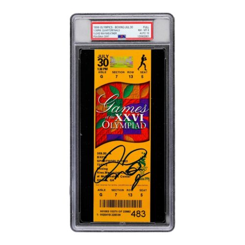 FLOYD MAYWEATHER JR. SIGNED 1996 OLYMPICS BOXING QUARTERFINALS TICKET STUB PSA 8