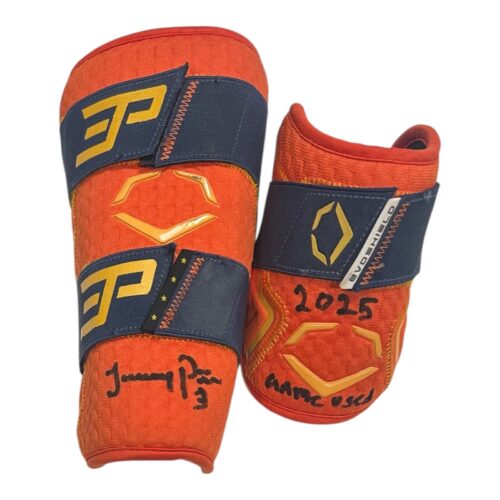 JEREMY PENA SIGNED 2025 SEASON GAME USED EvoSHIELD PROTECTIVE GEAR SET ORANGE