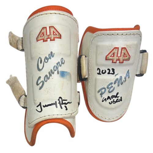JEREMY PENA SIGNED 2023 SEASON GAME USED 44 PRO PROTECTIVE GEAR SET ORANGE