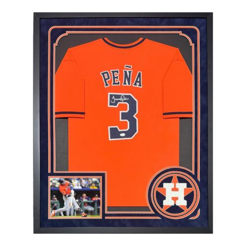 JEREMY PENA AUTOGRAPHED CUSTOM FRAMED ORANGE/BLUE JERSEY JSA AUTHENTICATION