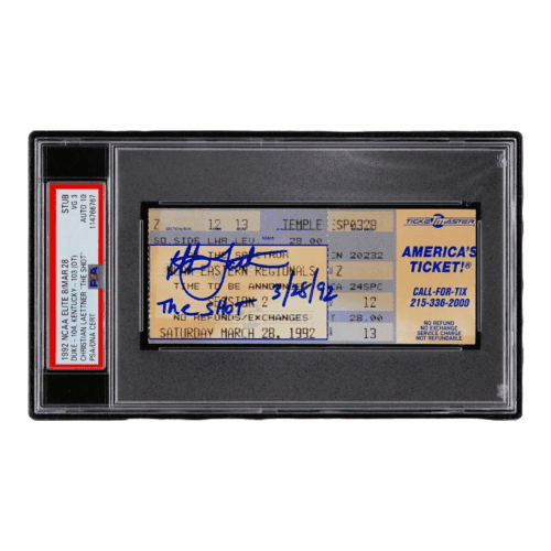 CHRISTIAN LAETTNER SIGNED THE SHOT TICKET STUB DUKE VS KENTUCKY ELITE 8 PSA VG 3