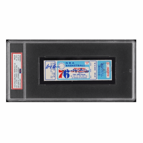 JULIUS ERVING & GEORGE GERVIN SIGNED 1976 NBA DEBUTS TICKET STUB PSA VG-EX 4