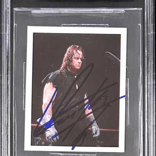 Undertaker Signed 1992 Merlin WWF WWE Stickers Card #84 Beckett 14058261 Auto 10