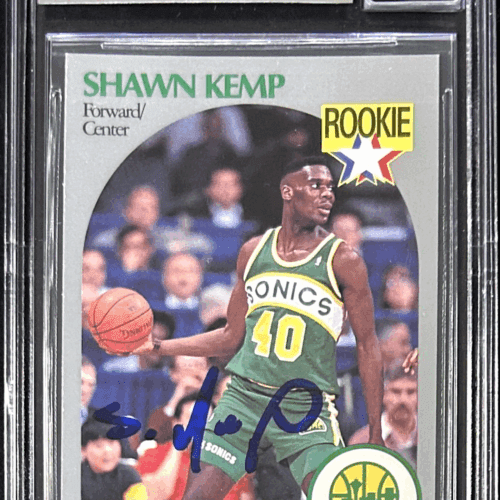 Shawn Kemp Signed 1990-91 NBA Hoops Rookie Card #279 Beckett 15989188 Auto 10
