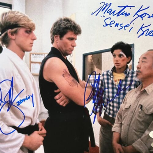 Ralph Macchio, William Zabka, & Martin Kove Autographed 8×10 Photo JSA Authenticated This is …